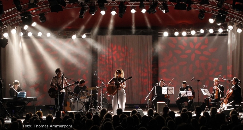 Pop meets Classic 2009 VW-Halle, meike plays her song Seefahrerherz in front of 6,000 people